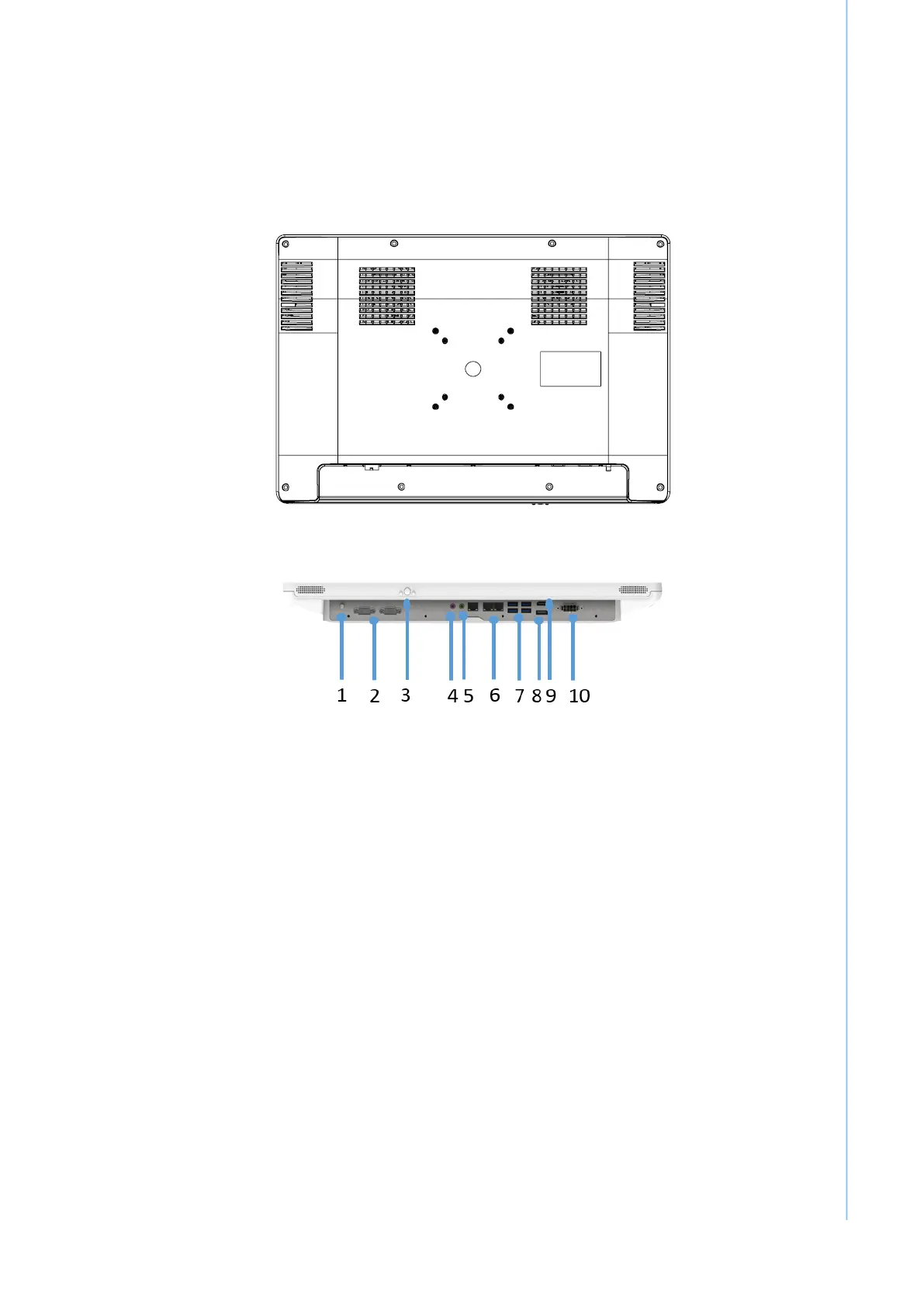 sunken I/O section is at the bottom of the panel PC, as shown in Figure 2.2 with a