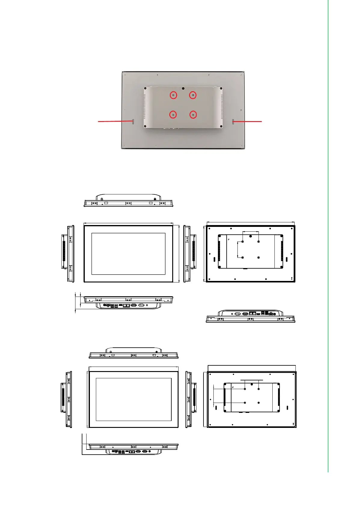 The PPC-3150SW/3180SW/324W-PN4 rear panel features four VESA mount holes