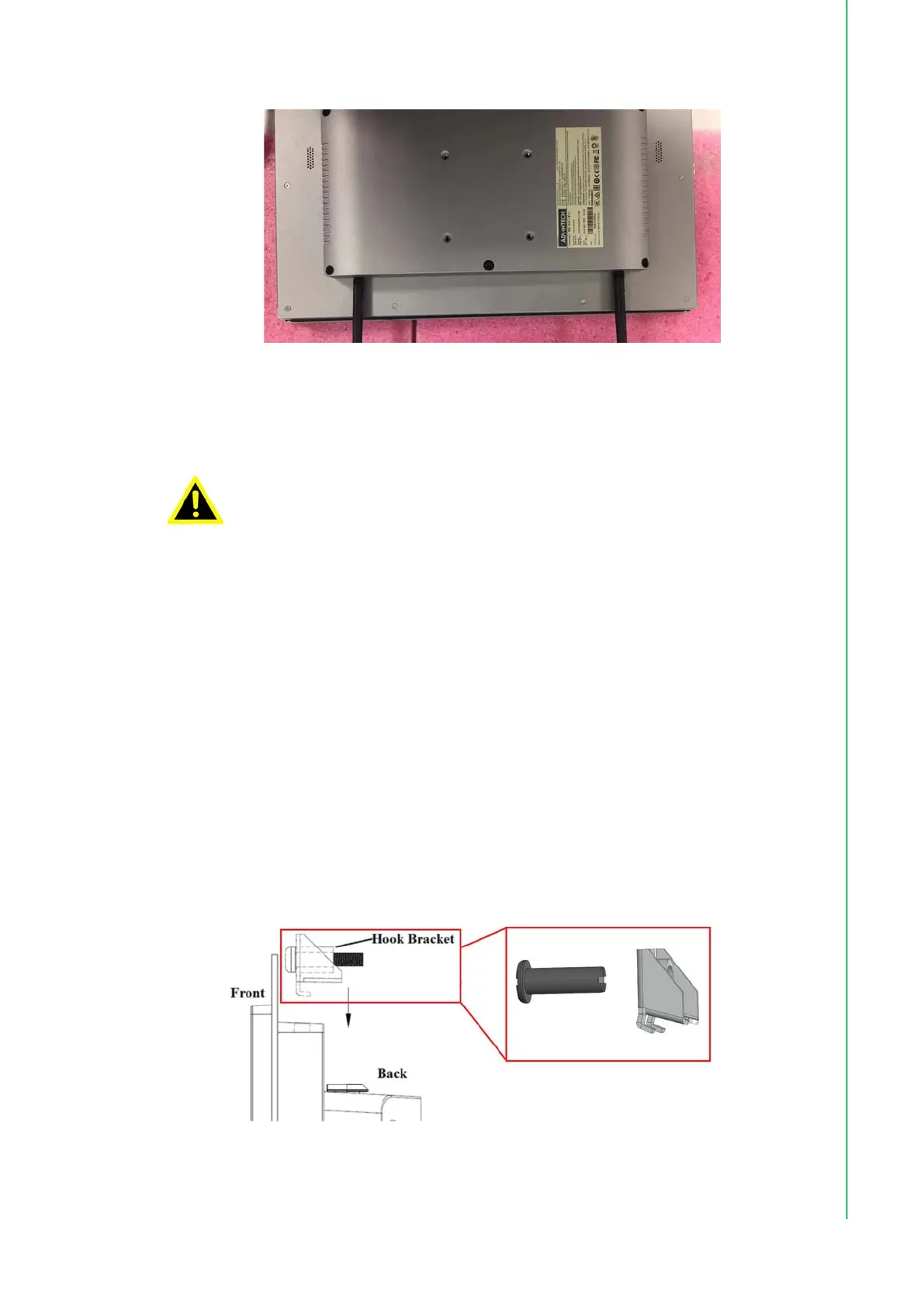 2. Insert the panel PC into the cutout. Retrieve the hook brackets and M6 x 21L