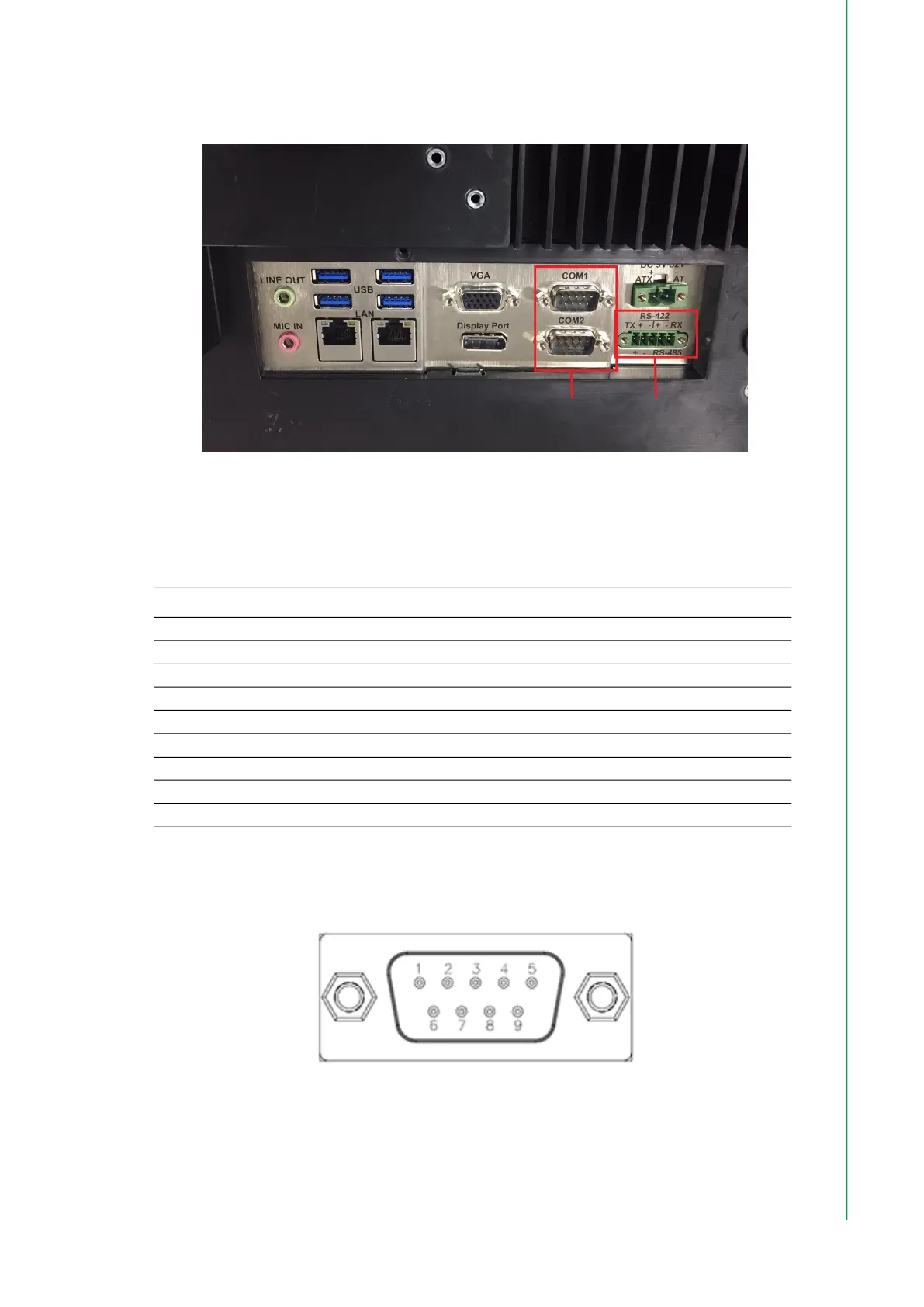 COM 1 and COM 2 (RS232, pin 9 supports 5 V/12 V output)