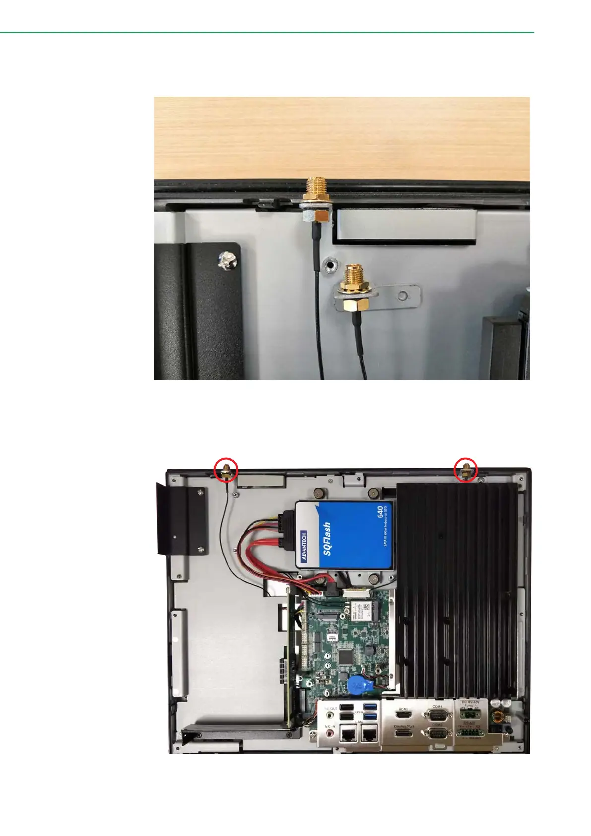 5. Secure the assembled antenna holder to the top of the panel PC. Then connect