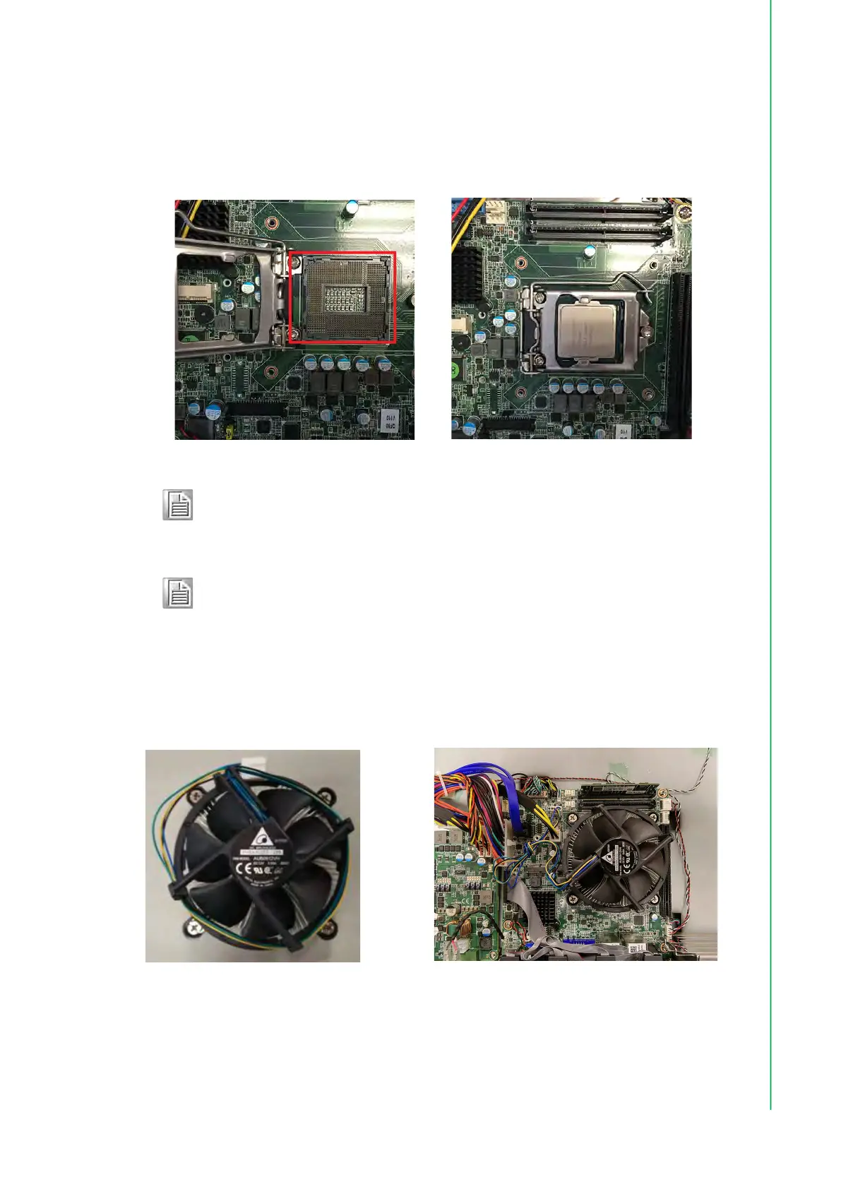 Note! After CPU installation, ensure the CPU surface is covered in thermal