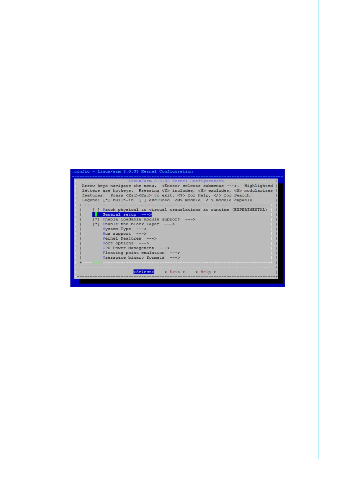 Then you will see a GUI screen (Linux Kernel Configuration) as below: