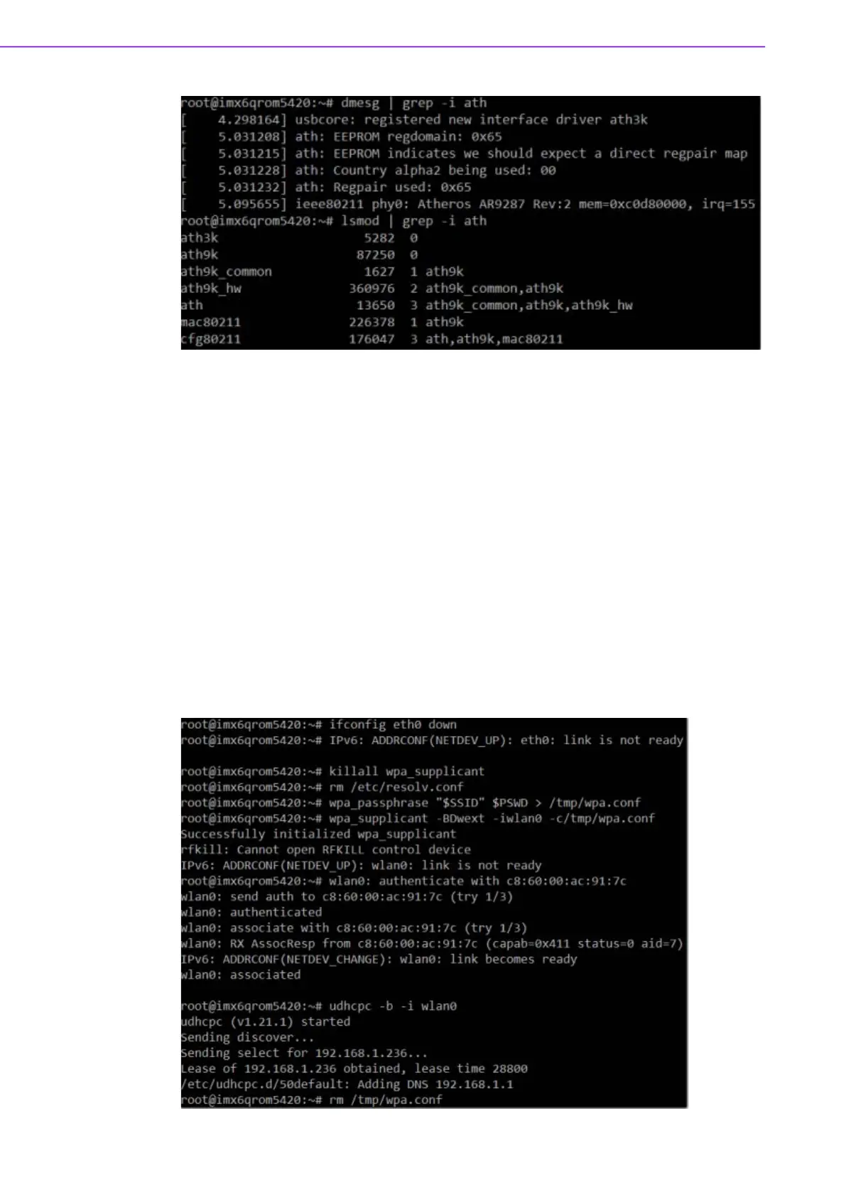 # wpa_supplicant -BDwext -iwlan0 -c/tmp/wpa.conf