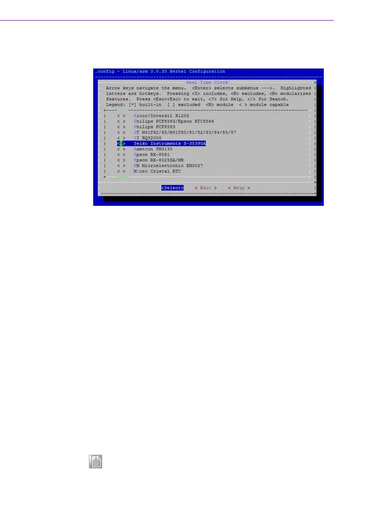 8. Select “Device Drivers”→”Real Time Clock”. You will see an option for “Seiko
