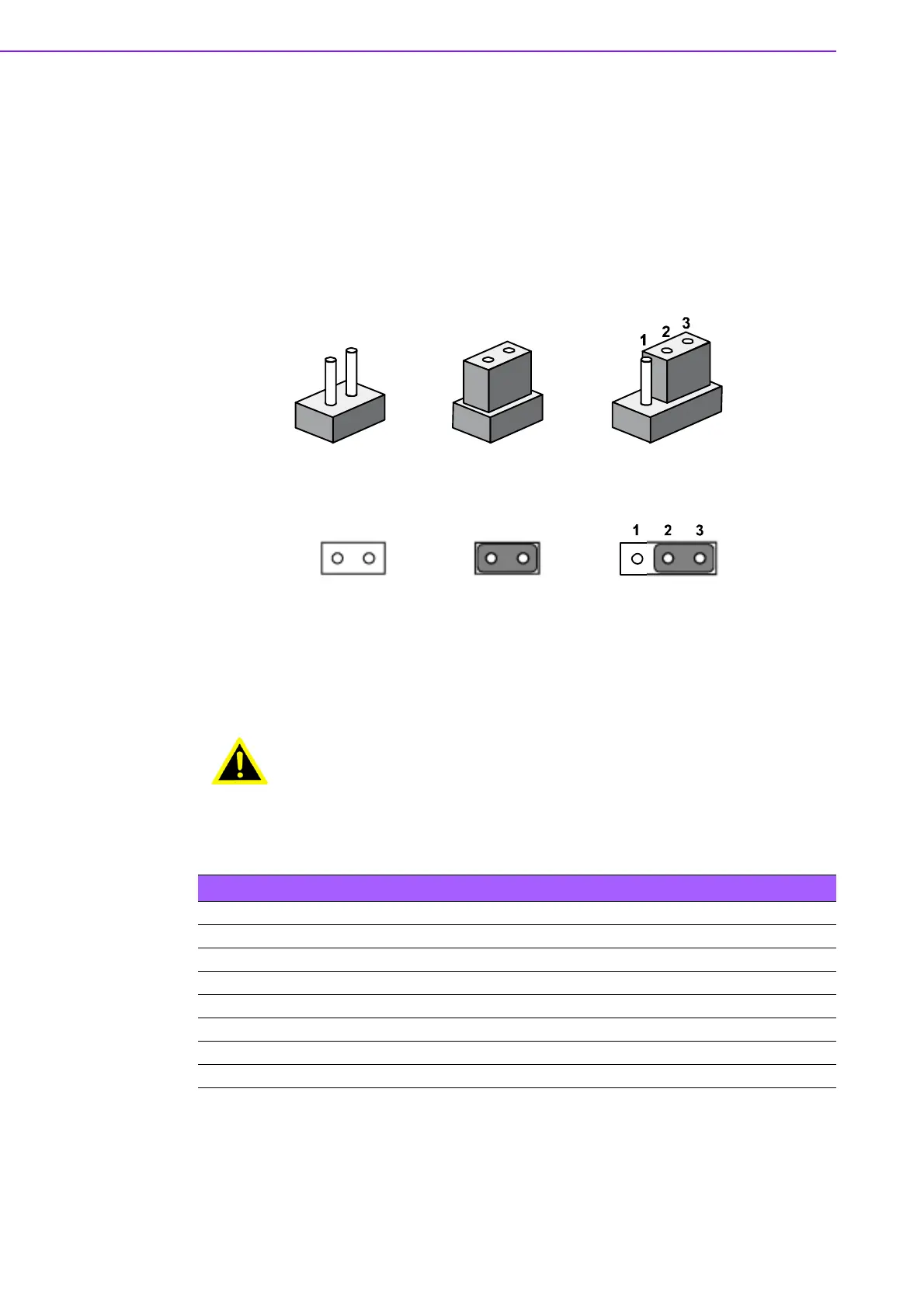 The jumper settings are schematically depicted in this manual as follows