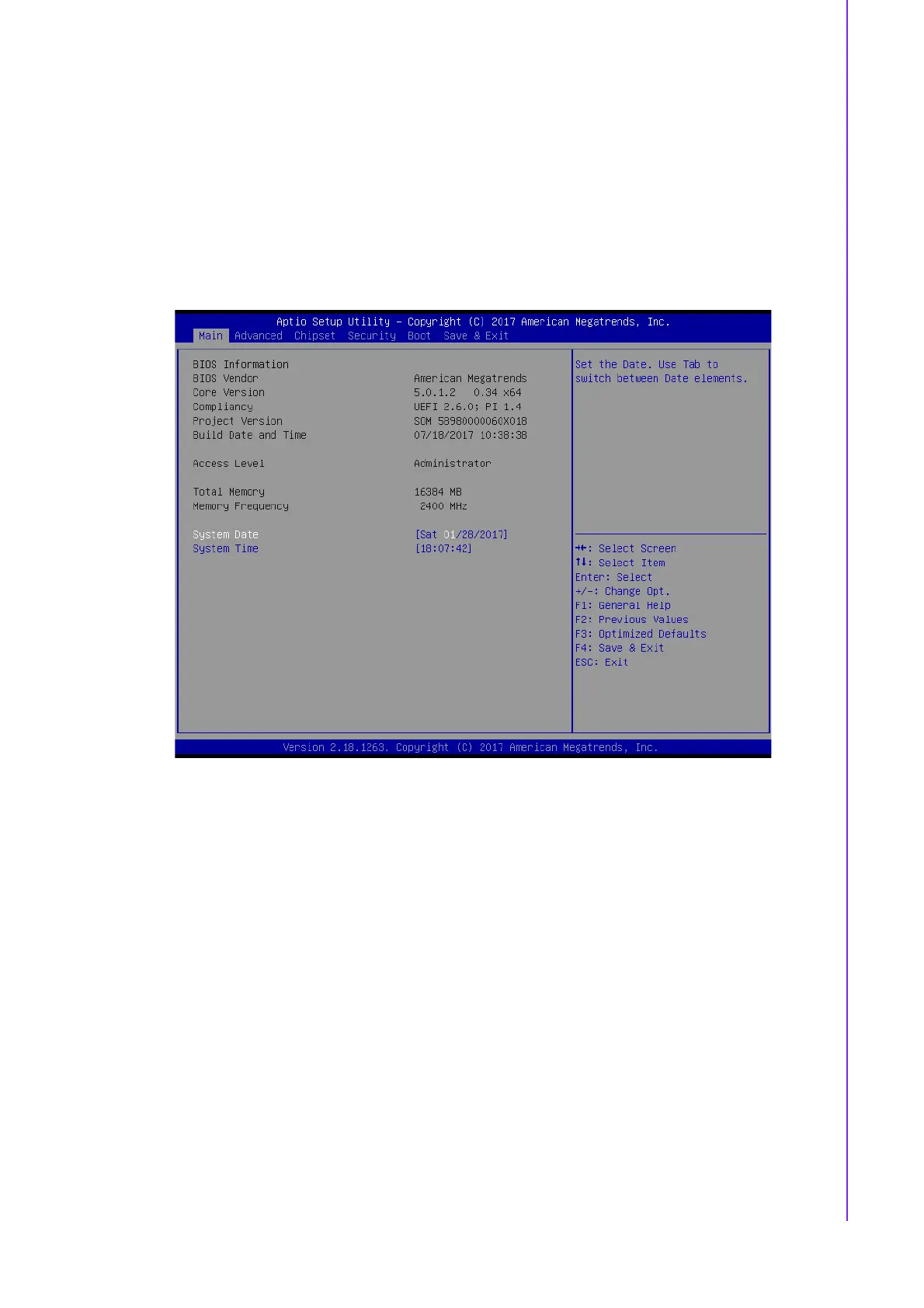 System Date using the <Arrow> keys. Enter new values through the keyboard.