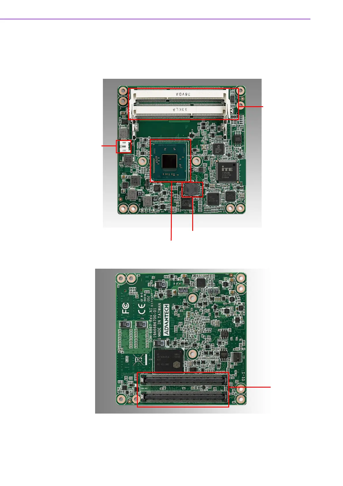 The figures below indicate the main chips on SOM-6867 Computer-on-Module.