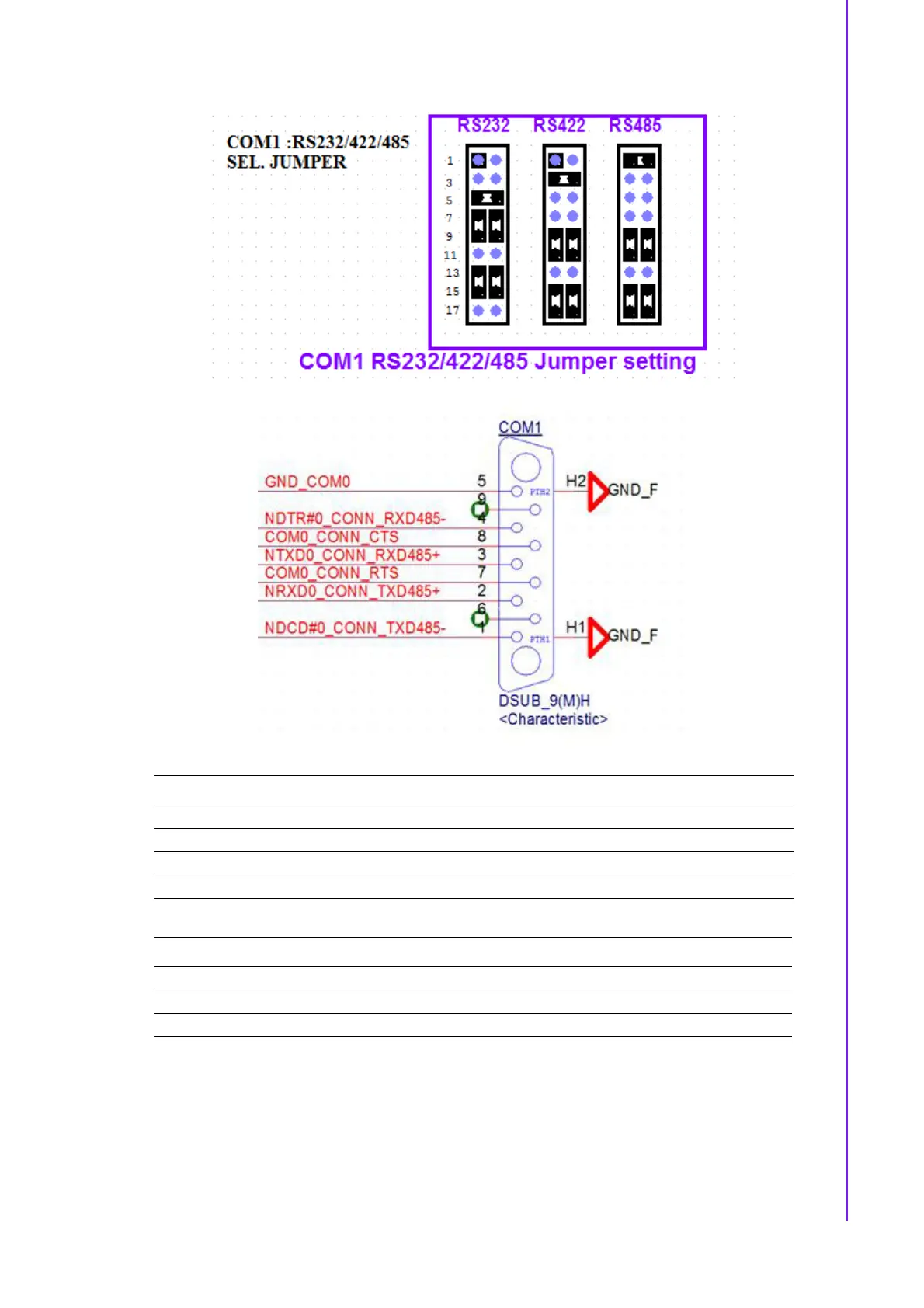 CN23 COM1 RS-232 / 485 / 422 Selection Pin Header