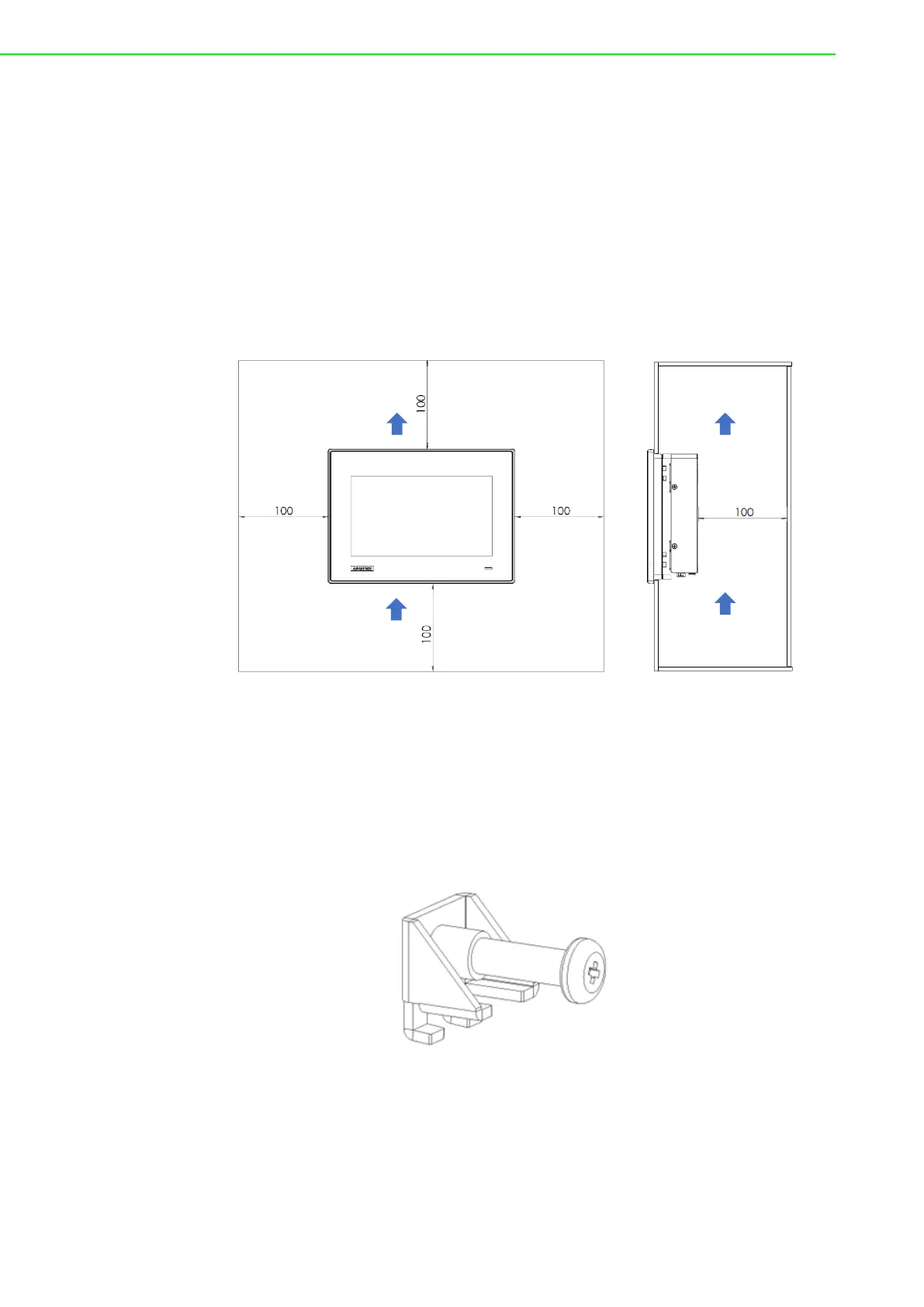 tions (blue arrows). The suggested mounting panel thickness is less than