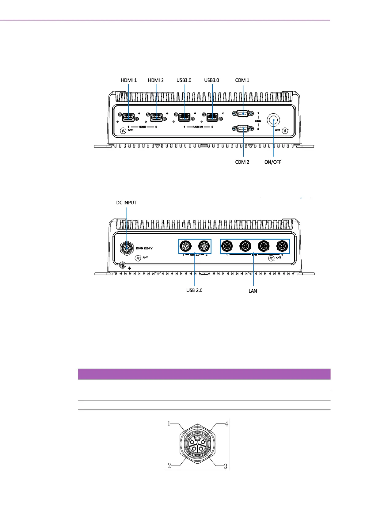 TS-207 comes with 4-pin M12 A-code power input connector for 12/24 V DC Input for