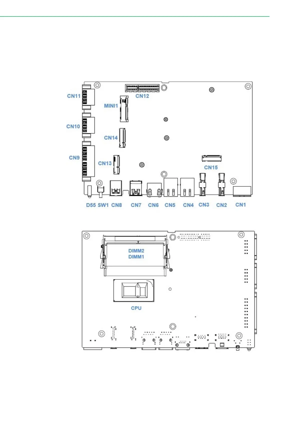 Figure 2.1 Diagram of Connector Locations on UNO-148 (Top Side)