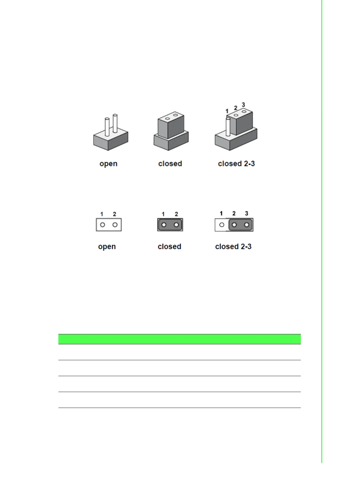 To close a jumper, you connect the pins with the clip. To open a jumper, you remove
