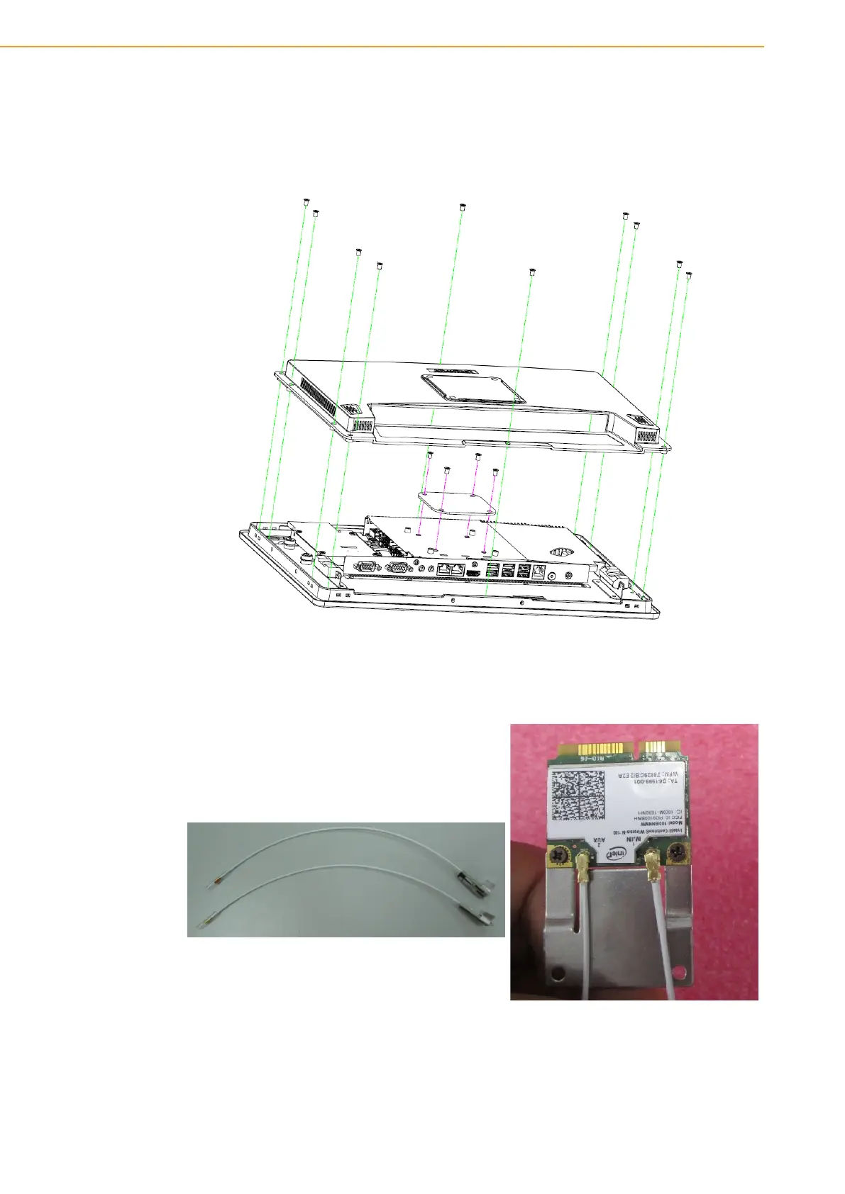 318D/E/F, 170008954-01 for UTC-318G/H) to “connector” on the WLAN card.
