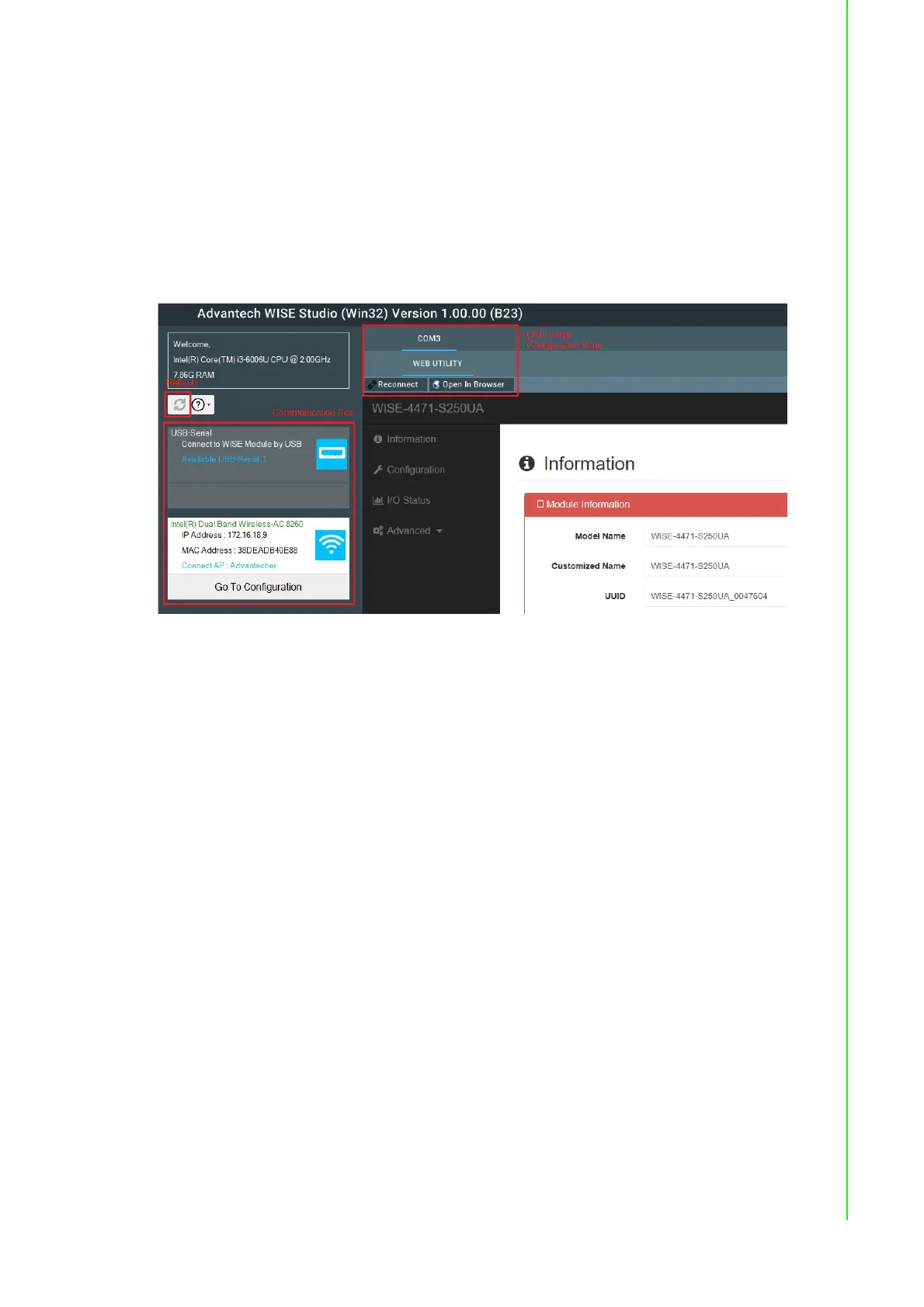uration pages. For WISE modules configured by Ethernet, LAN, or WLAN, WISE Stu-