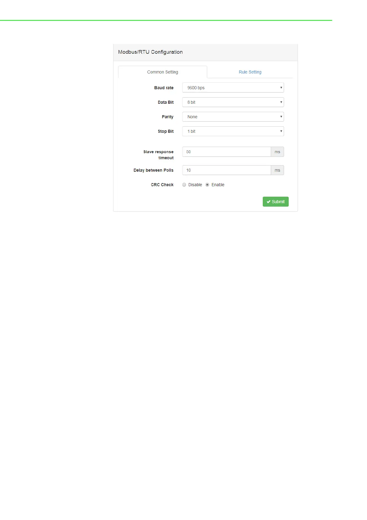 Modbus Configuration - Rule Setting Tab