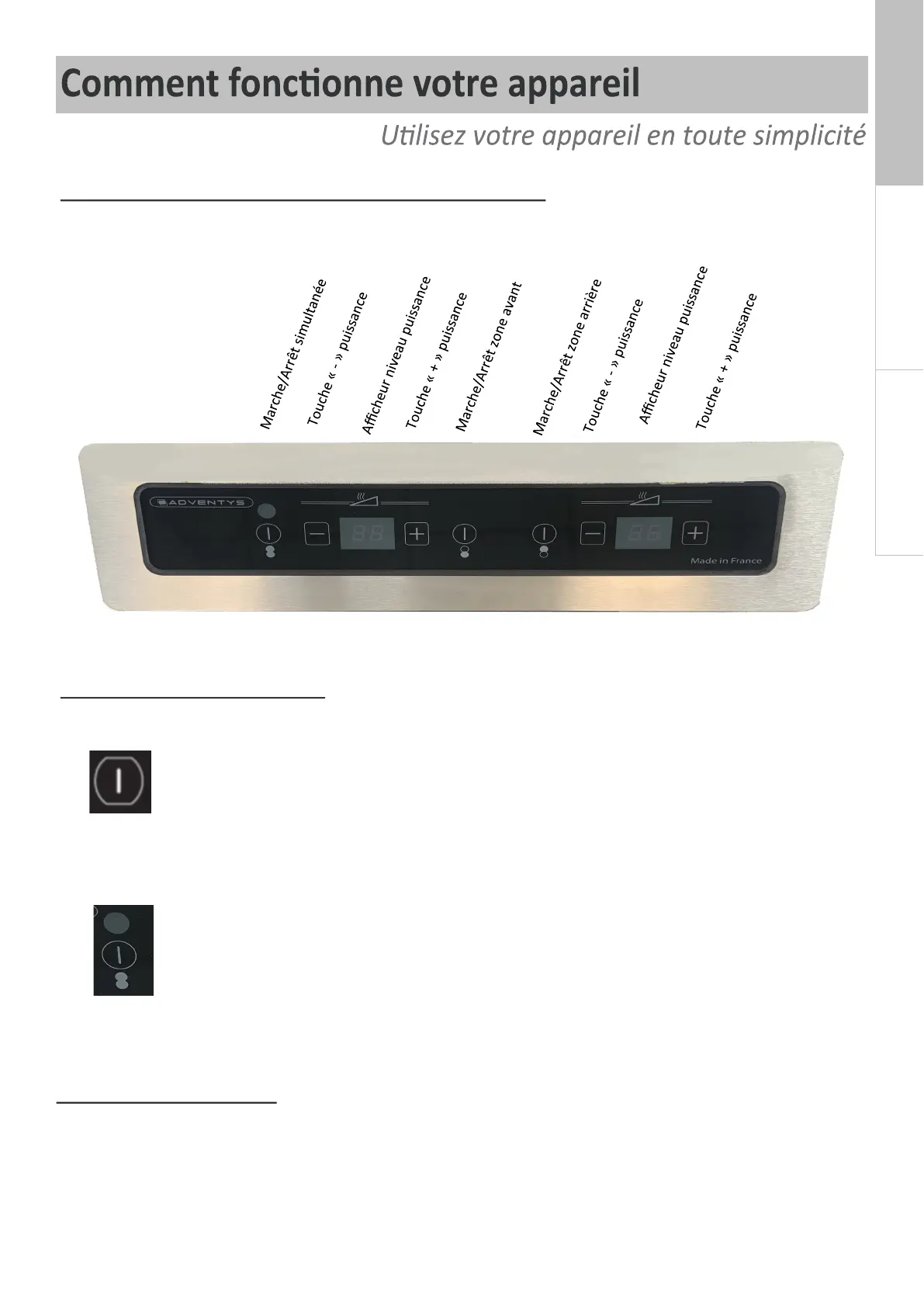 Les touches marches/arrêts du milieu vous permeent de régler chaque foyer indépendamment.