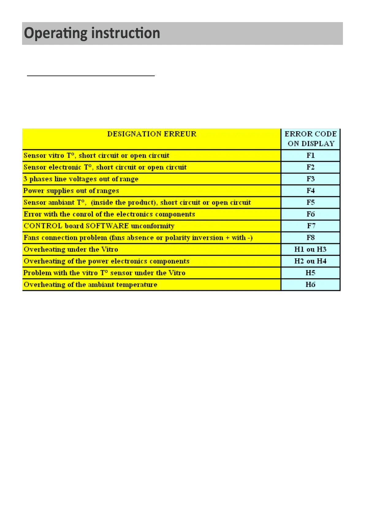 A ashing error code « Fx » can appear on the display to warn about a malfunconing.