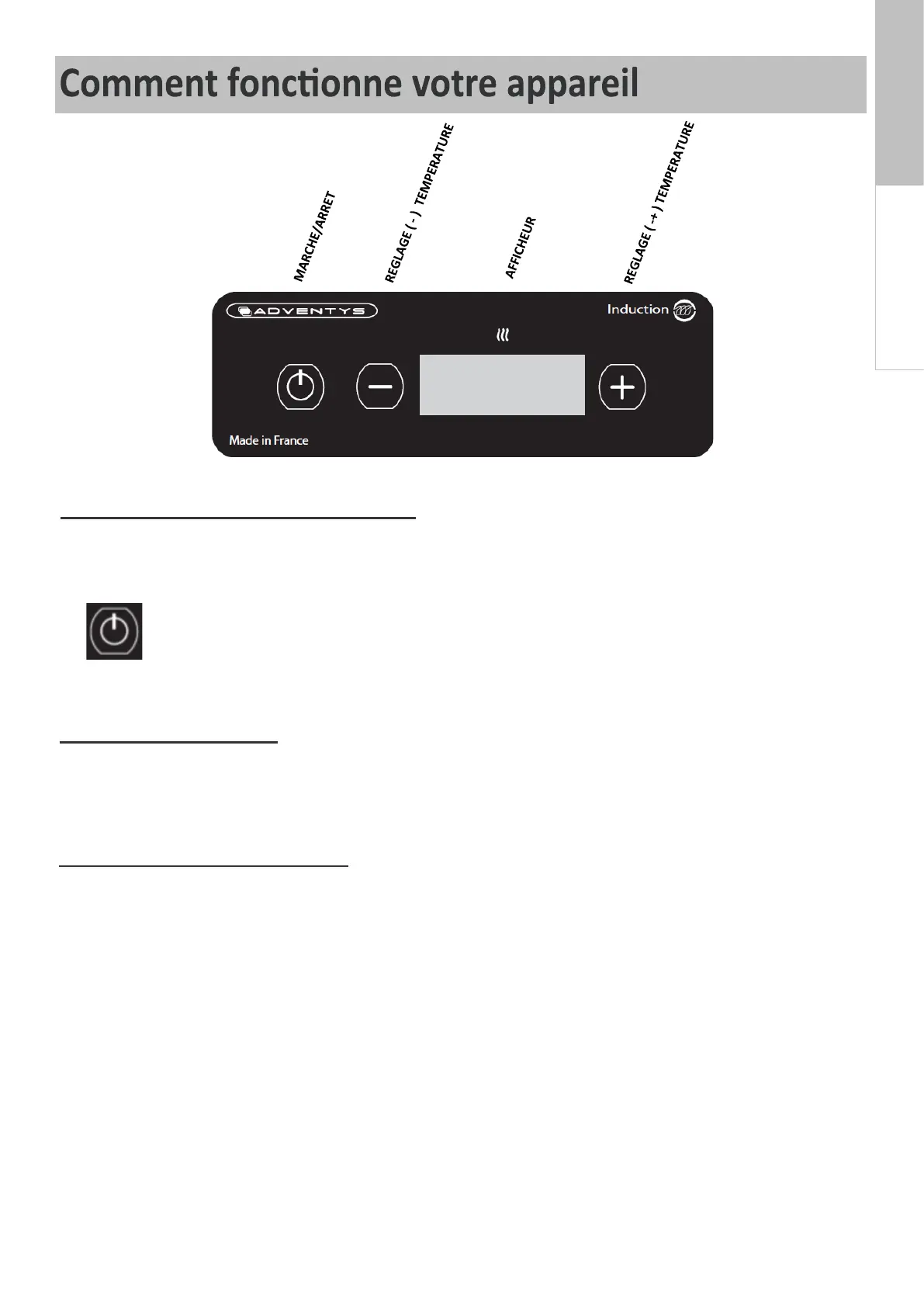 s'ache sur l'acheur indicateur du niveau de température. Aucune puissance n'est encore