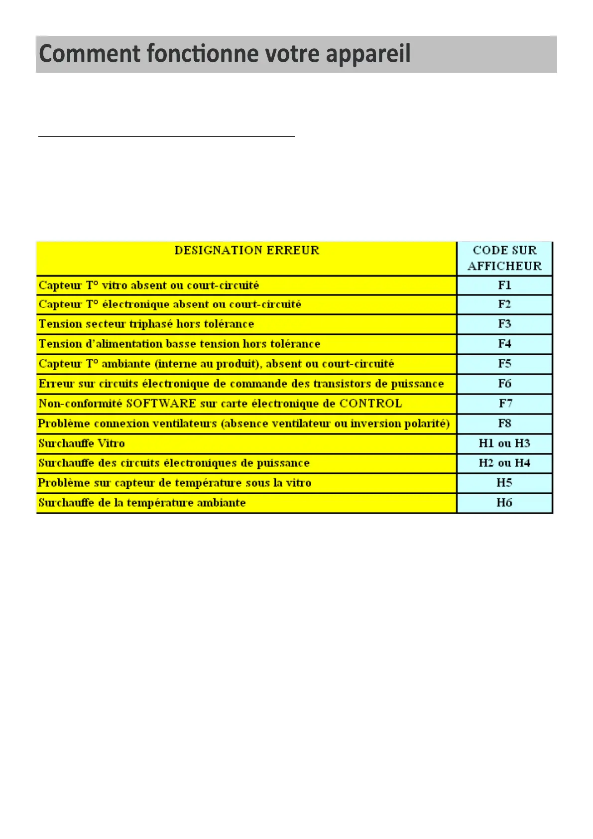 l’appareil avec l’indicaon sur l’acheur d’un code erreur clignotant « Fx ».