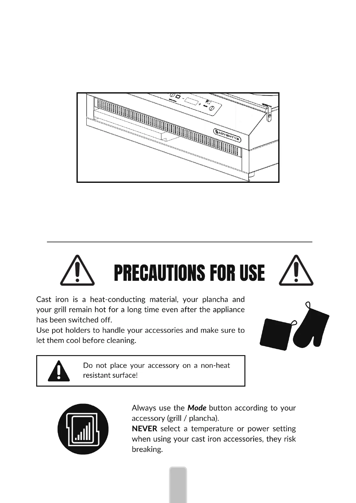WARNING: As a safety measure, once you have chosen to use Grill or Plancha Mode on one of