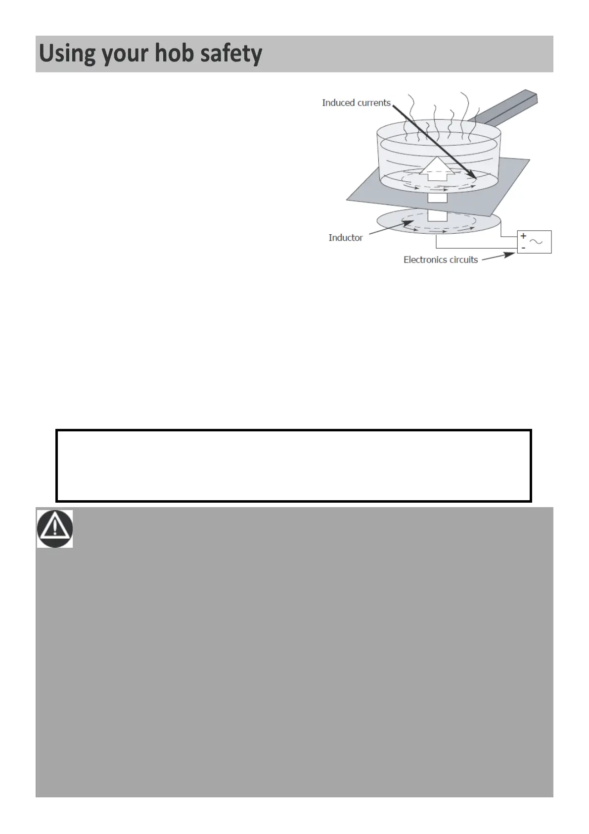 Only appropriate cookware should be placed on the hob. Do not put any other object on it, no maer what