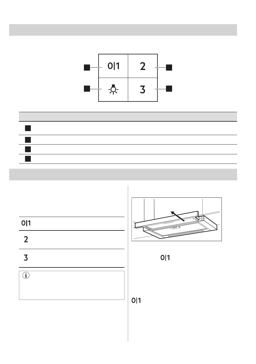 Pierwsza prędkość silnika / Wył. Włączenie pierwszej prędkości wentylatora. Drugie naciśnięcie powo‐