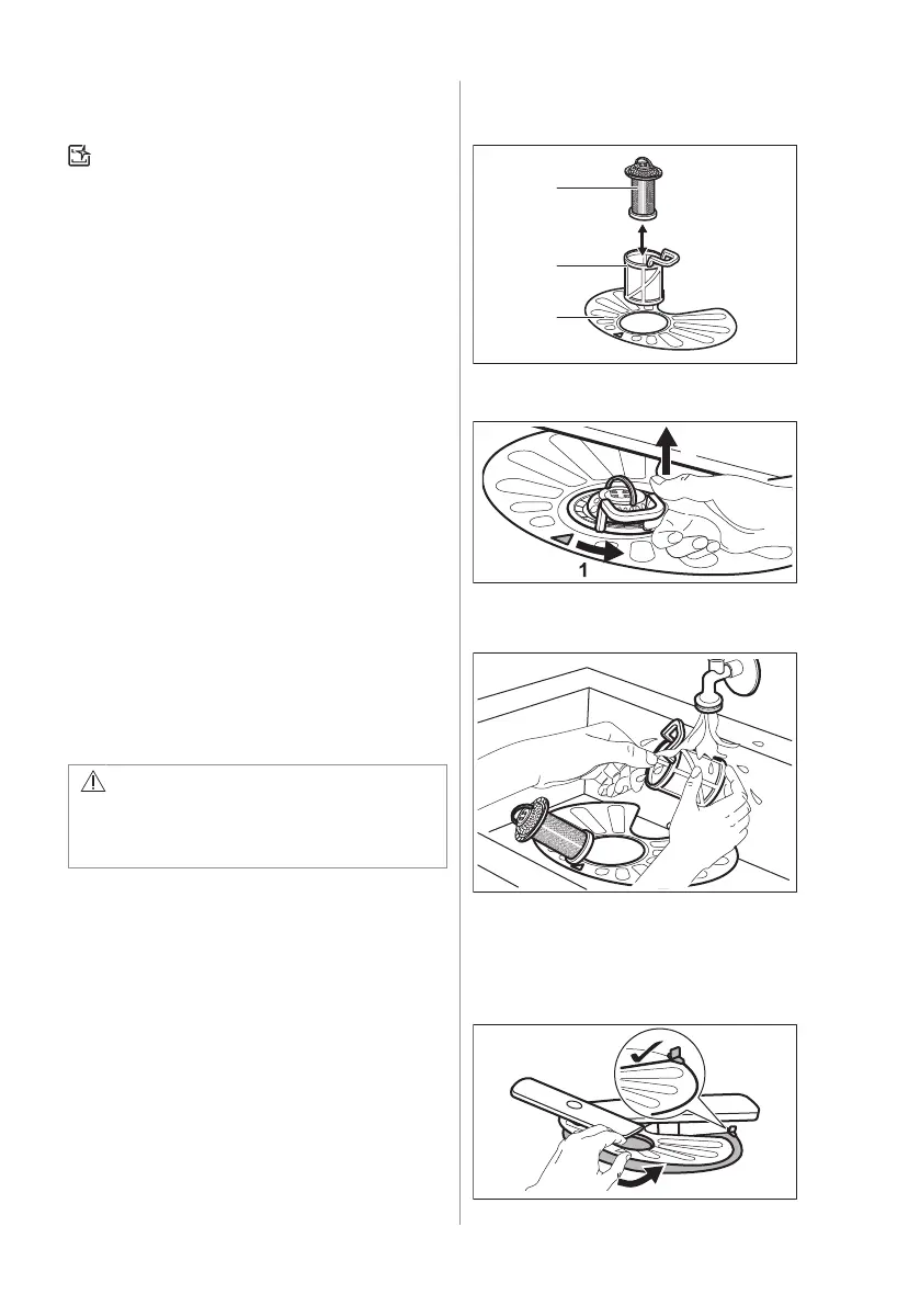 1. Draai de filter (B) linksom en verwijder