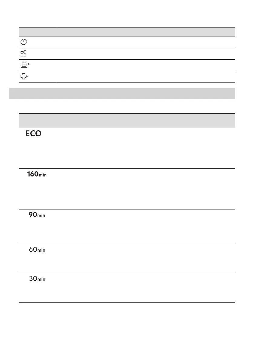 The order of the programmes in the table may not reflect their sequence on the control panel.
