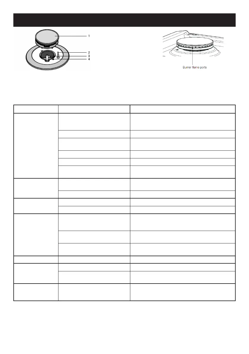 Burner flame blockage in ignition area Ensure that ports in ignition area are clean and dry