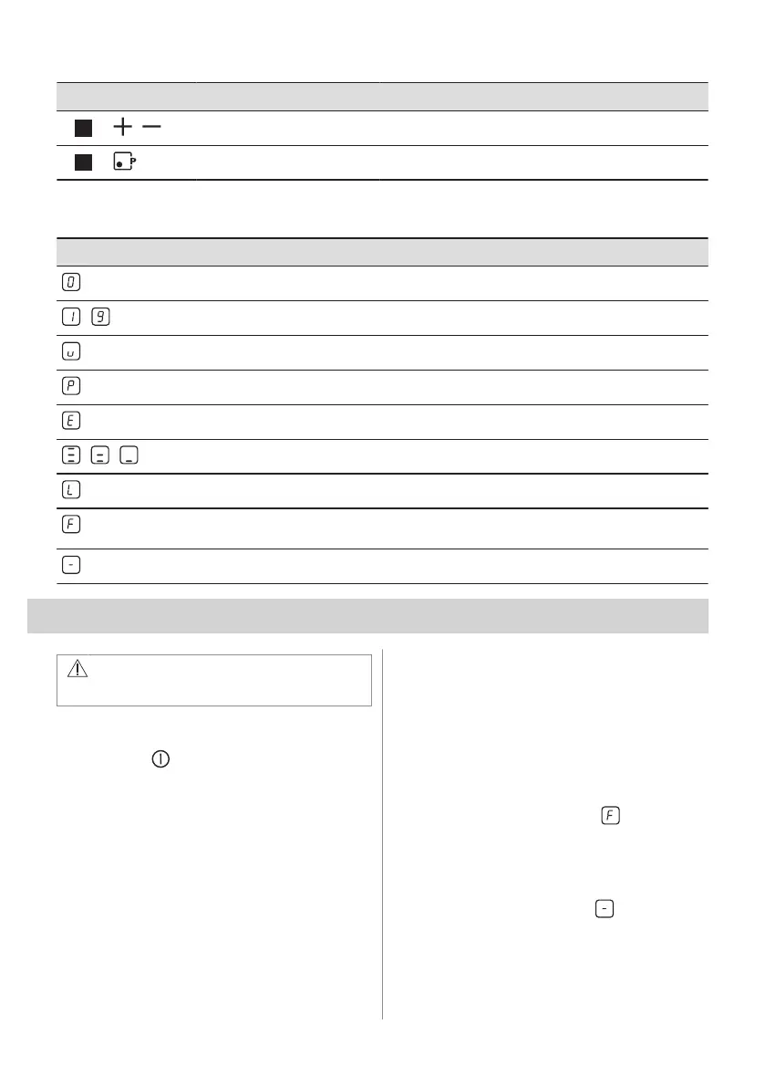 • Nach dem Einschalten des Kochfelds wird