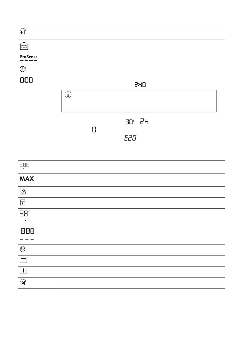Indicador de roupa máxima. Pisca se a quantidade de roupa exceder a carga recomenda‐