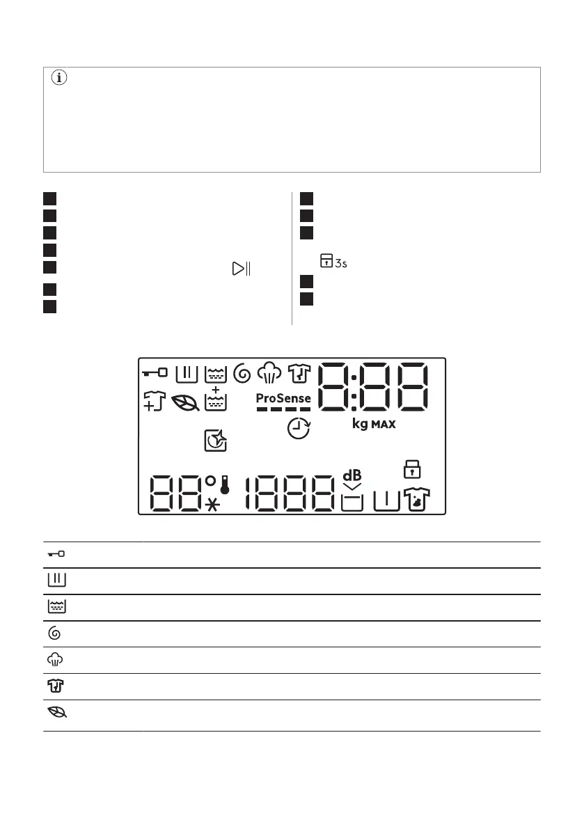 Spia di scarico e centrifuga. Lampeggia durante la fase di scarico e centrifuga.