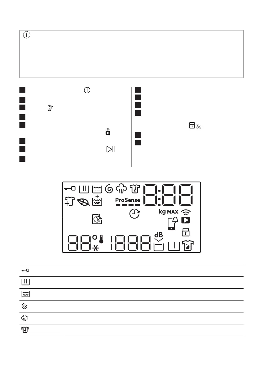 Spia di scarico e centrifuga. Lampeggia durante la fase di scarico e centrifuga.