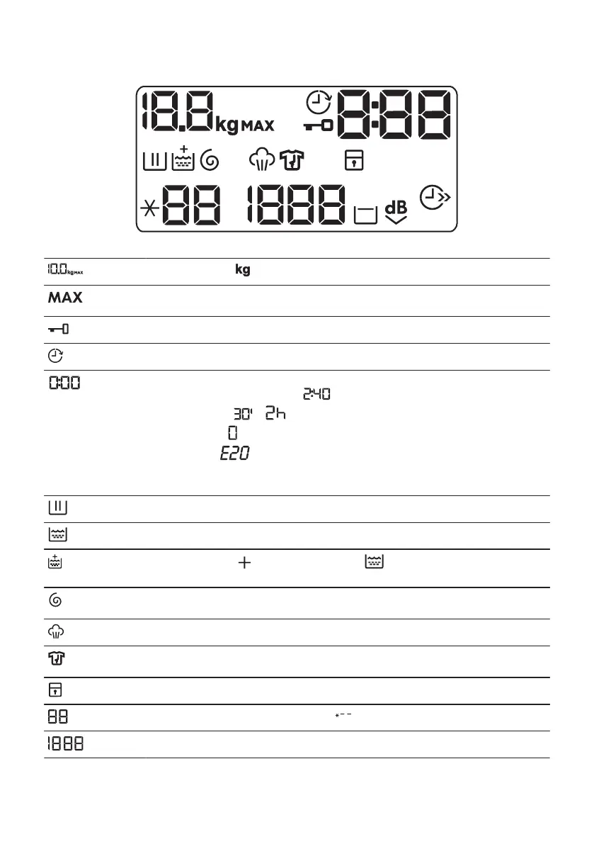 Controlelampje maximum wasgoedgewicht. Knippert als de wasgoedbelading de maxi‐
