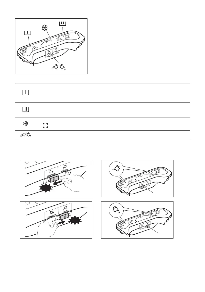 Vakje voor vloeibare toevoegingen (wasverzachter, stijfsel).