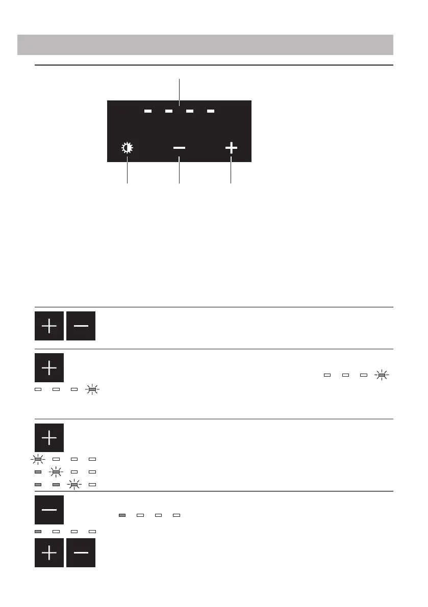 1. Taste 3 drücken, die Abzugshaube schaltet sich mit Geschwindigkeit 1 ein.