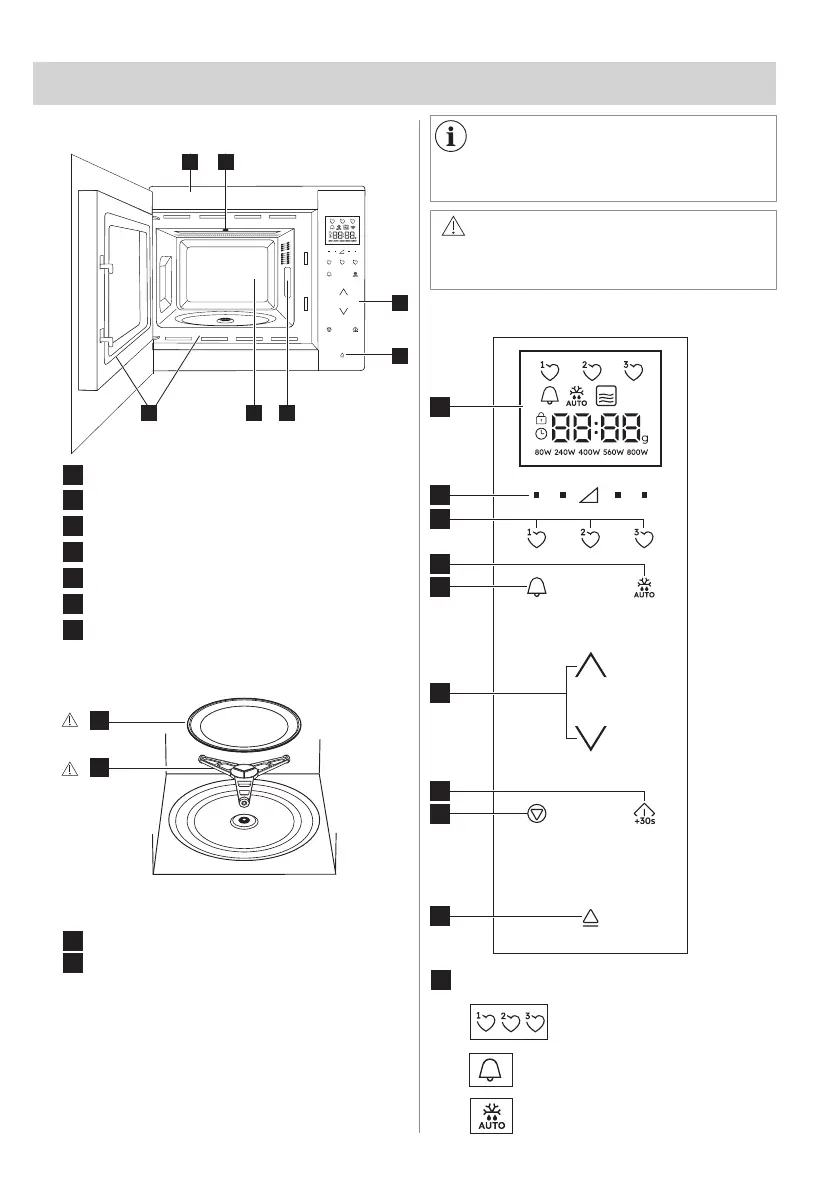 Brug ikke mikrobølgeovnen, uden at disse dele