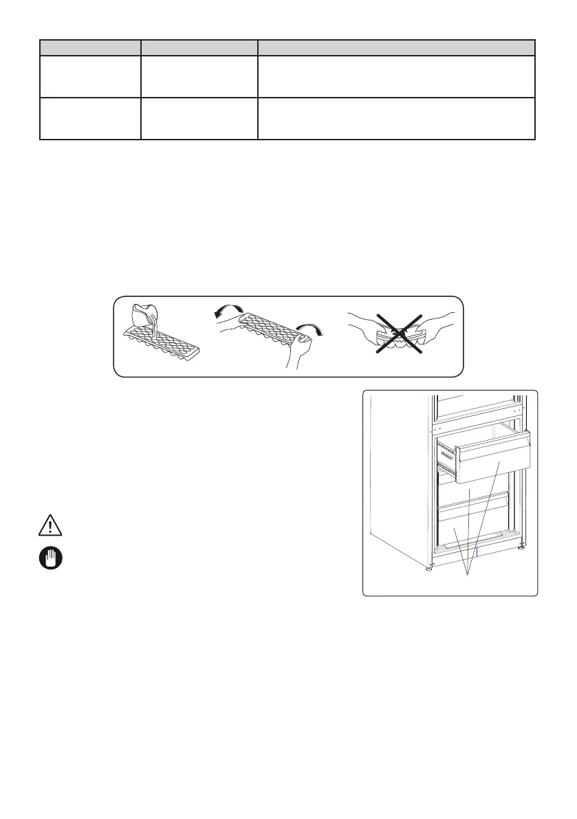 • Cuando el agua se haya congelado totalmente, puede doblar la cubitera para sacar los