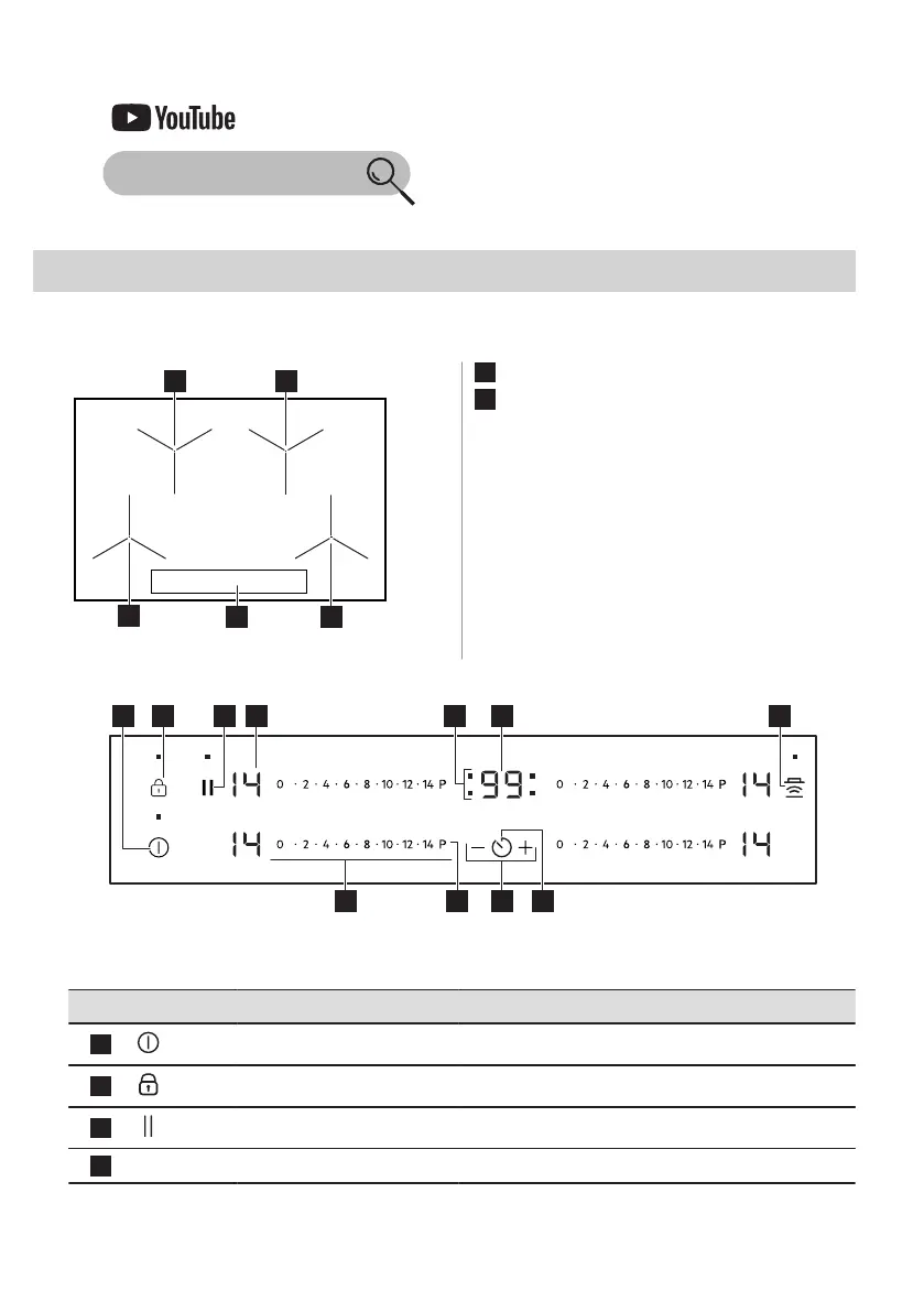 Ein / Aus Ein- und Ausschalten des Kochfeldes.