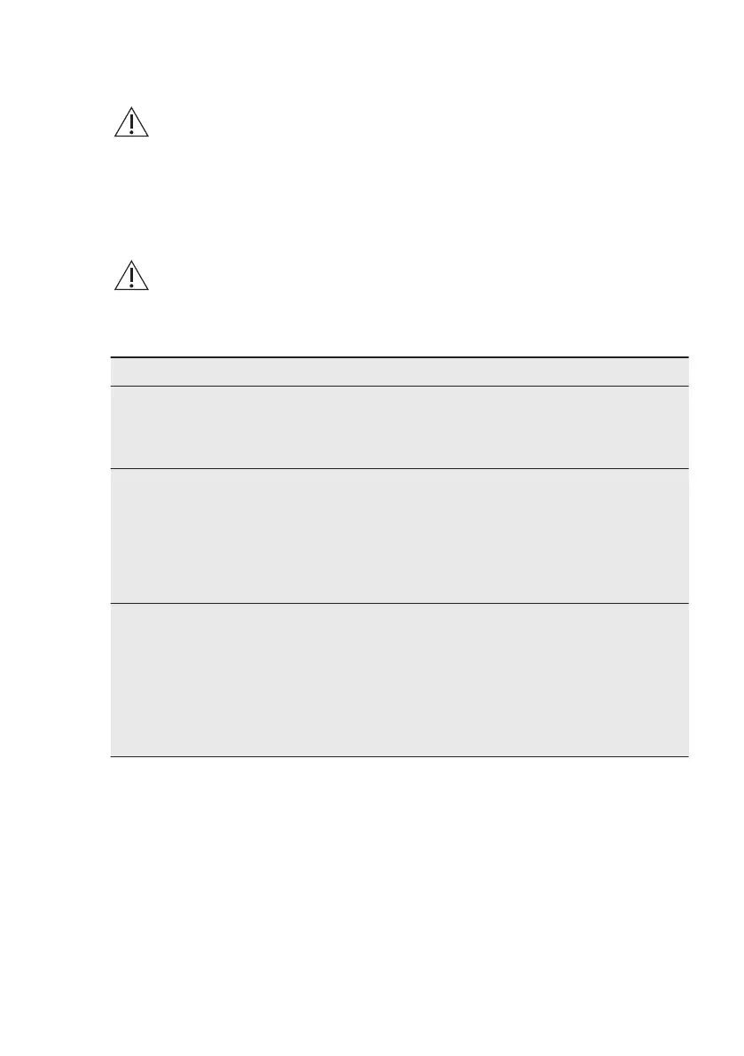 First try to find a solution to the problem (refer to the table). If the problem persists,