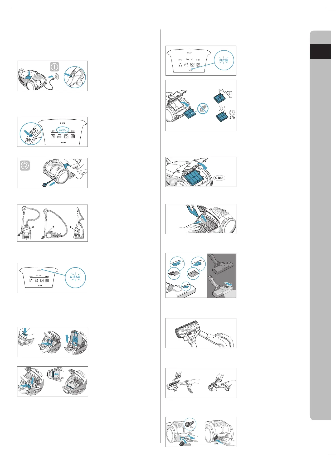 Remarque : lorsque vous démarrez l’aspirateur après remplacement du s-bag, 10 secondes