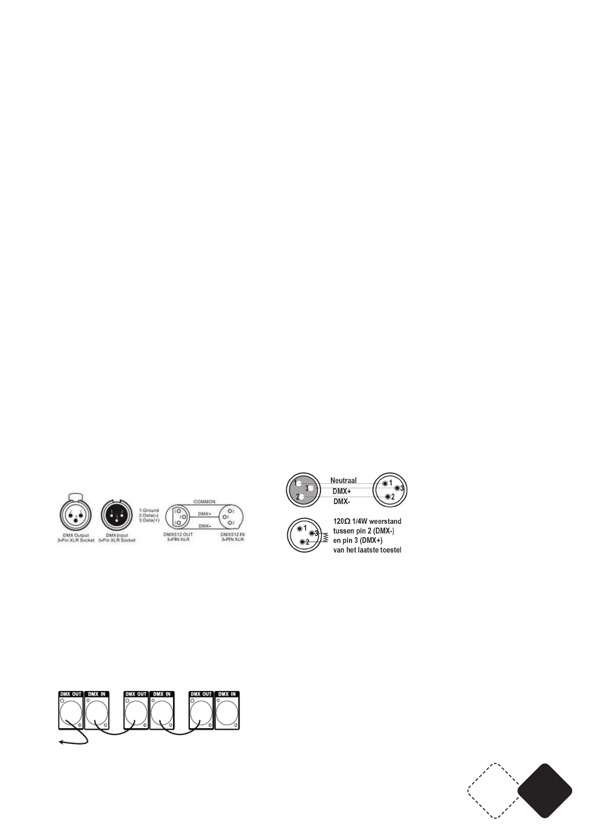 men is het aanbevolen een DMX signaal eindweerstand aan te sluiten.