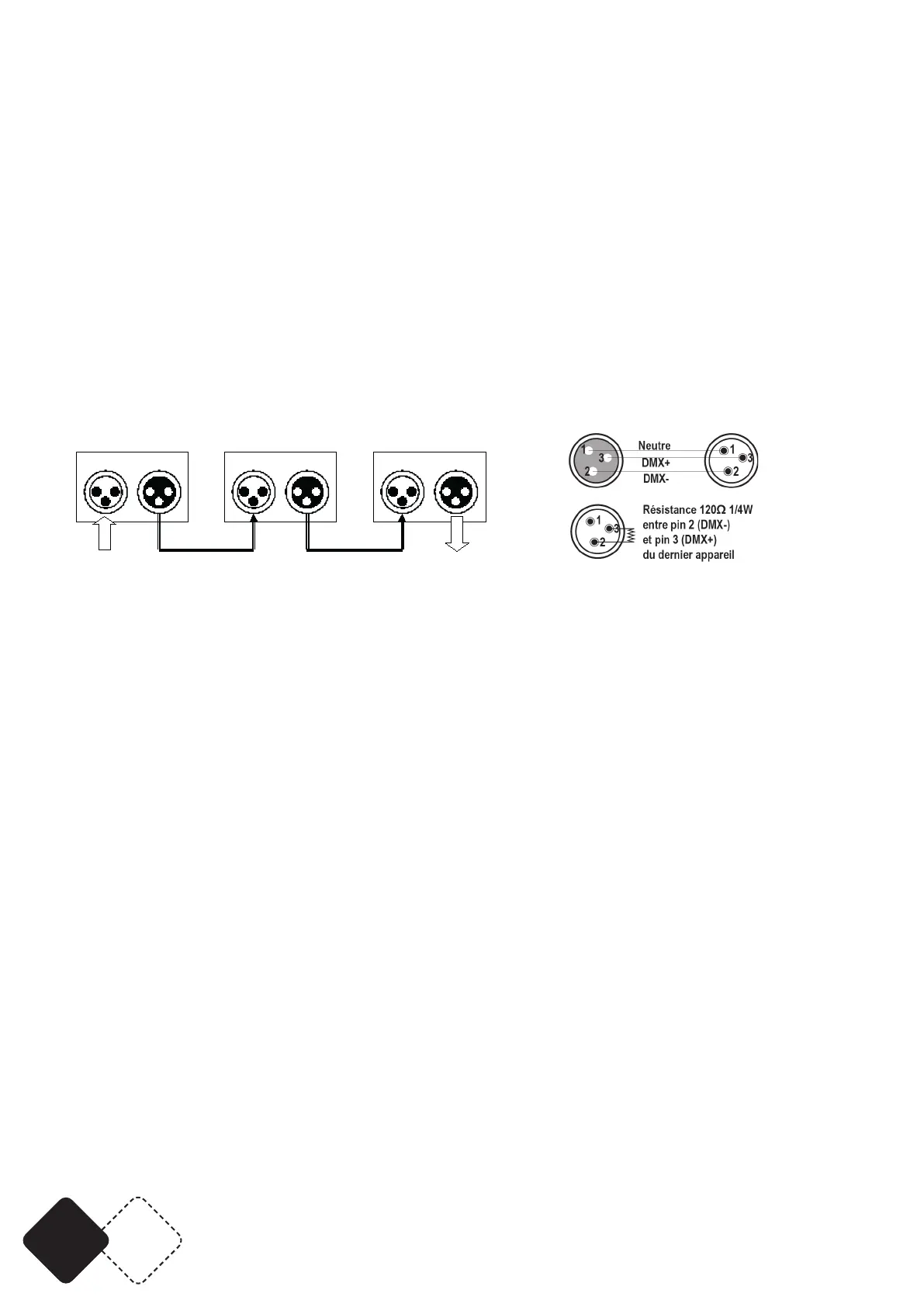 premier Maître. Branchez la sortie DMX du Maître sur l’entrée DMX de l’Esclave et ainsi de suite