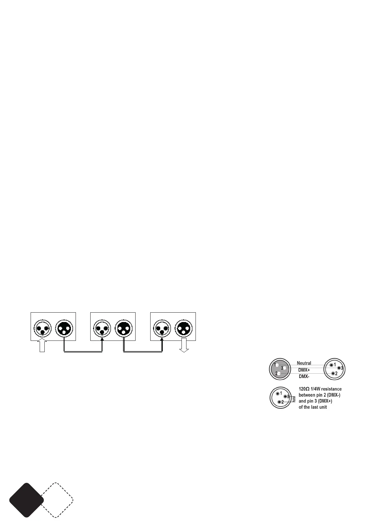 Den DMX OUT Verbinder des Master Geräts über ein 3-pol. XLR Kabel an den DMX IN Verbinder des