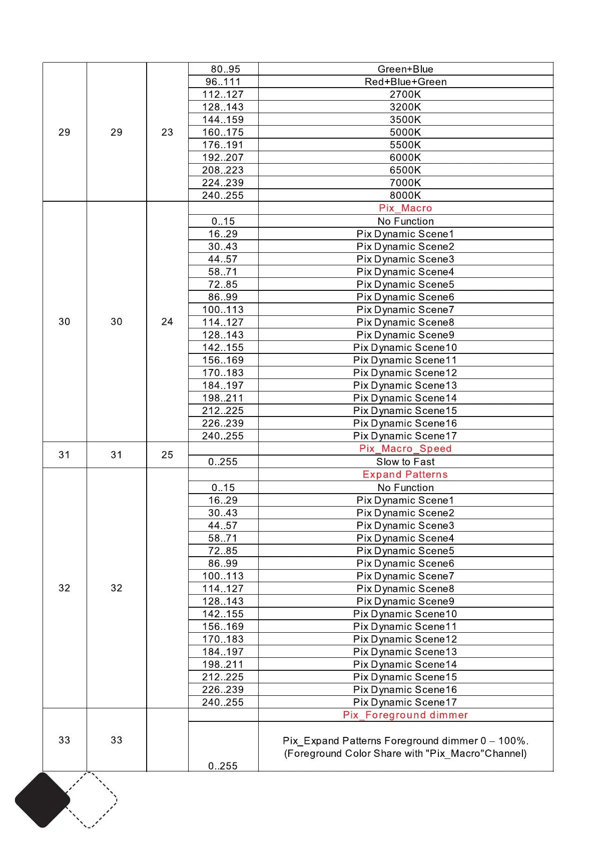 DMX CHANNELS