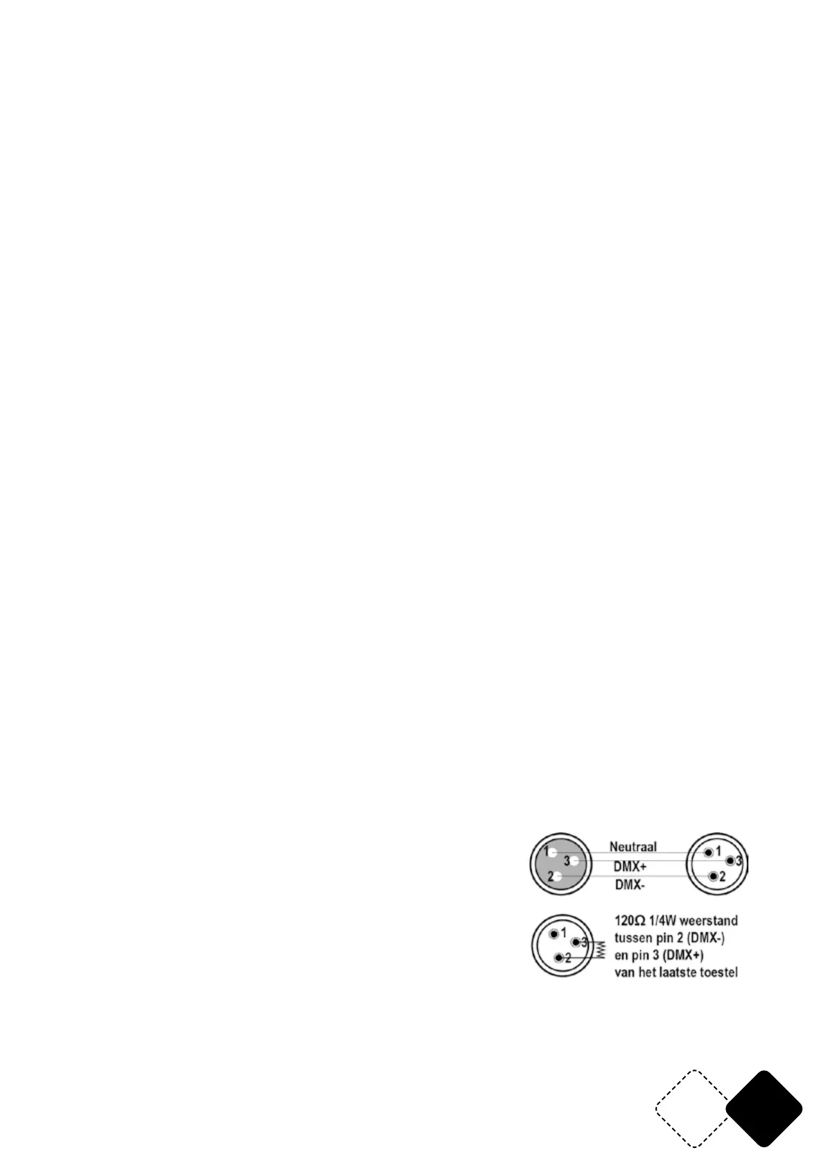 DMX signaal eindweerstand aan te sluiten.