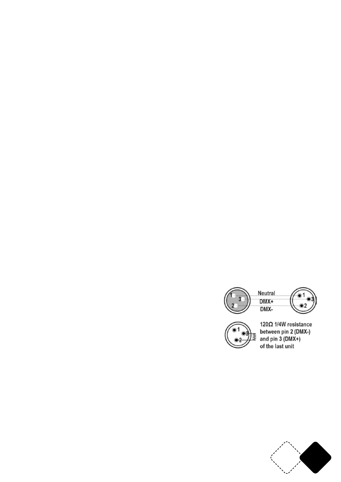 To link xtures together you must use data cables. If you choose to create your own cable, please