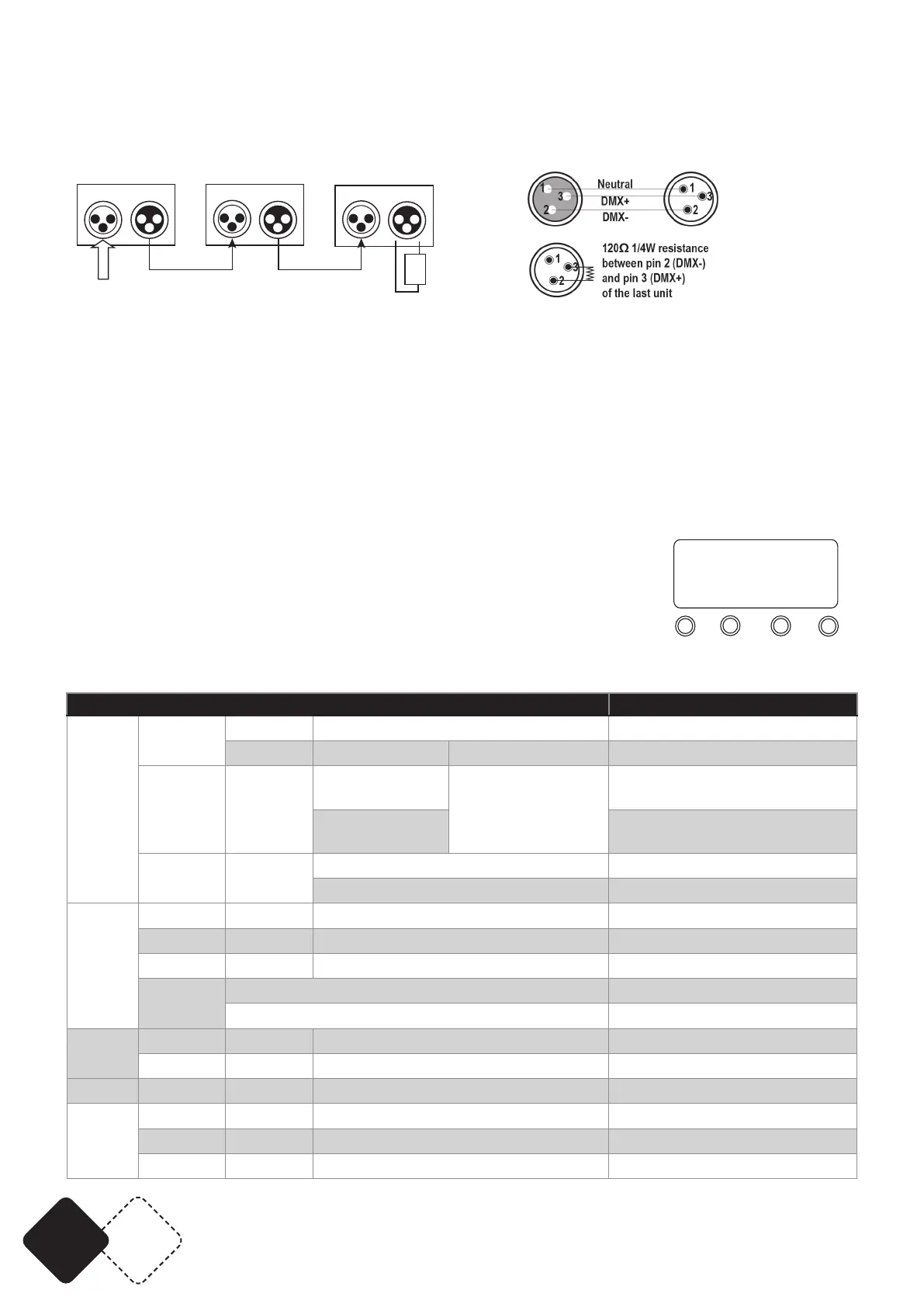 DMX output of the rst master light, analogously, till connected all the slave lights, and insert the