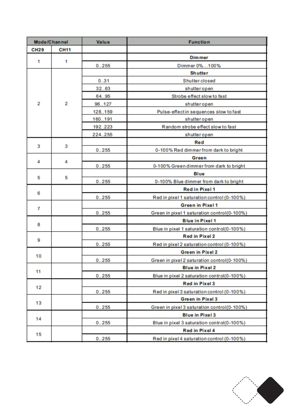 DMX CHANNEL CHART